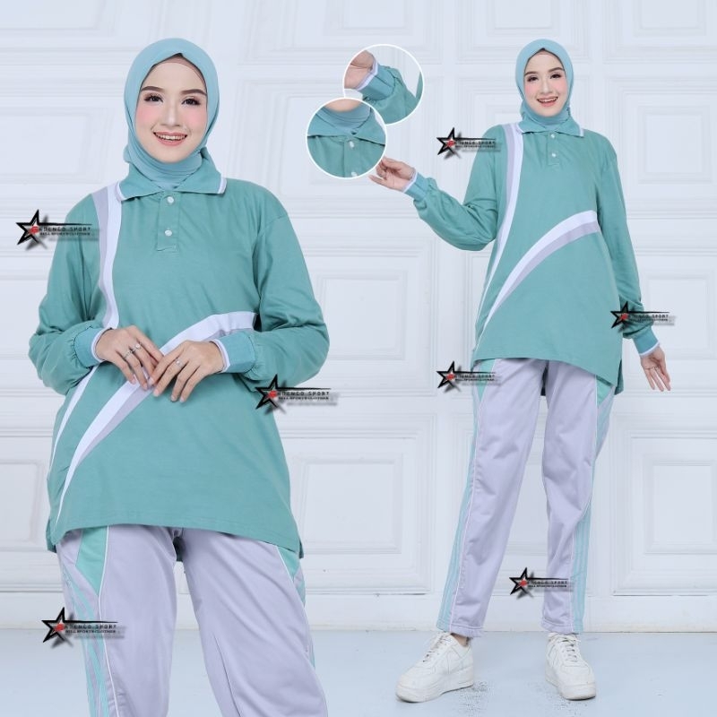 Setelan Kaos Trening Olahraga Lengan Panjang Wanita / Setelan Baju Olahraga Senam / one set olahraga