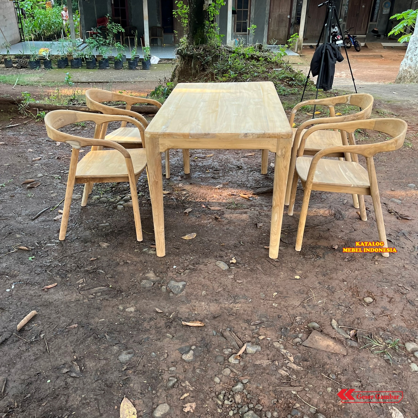 Set Meja Makan Kayu Jati + 4 Kursi Selly Bubut - Set Meja Makan Kursi Lengkung Modern