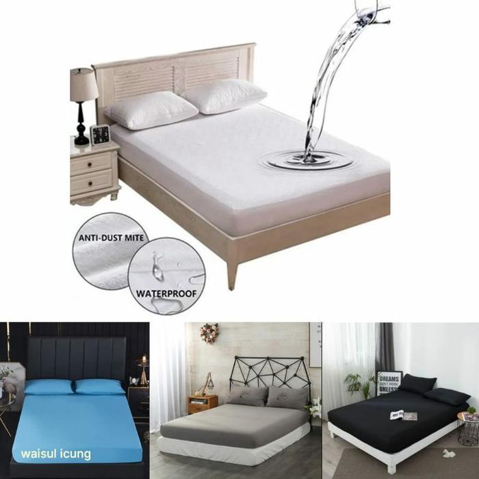 TERLARIS SPREI WATERPROOF ANTI OMPOL ANTI TAHAN AIR SIZE WARNA POLOS 180×200 160×200 120×200 90×200 POLOSBIRU