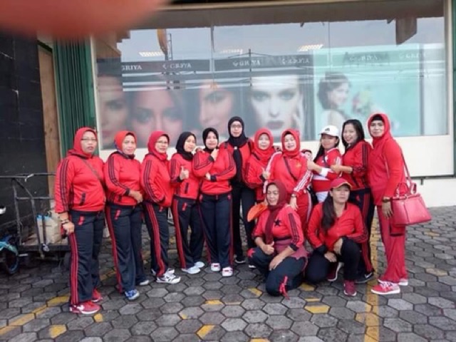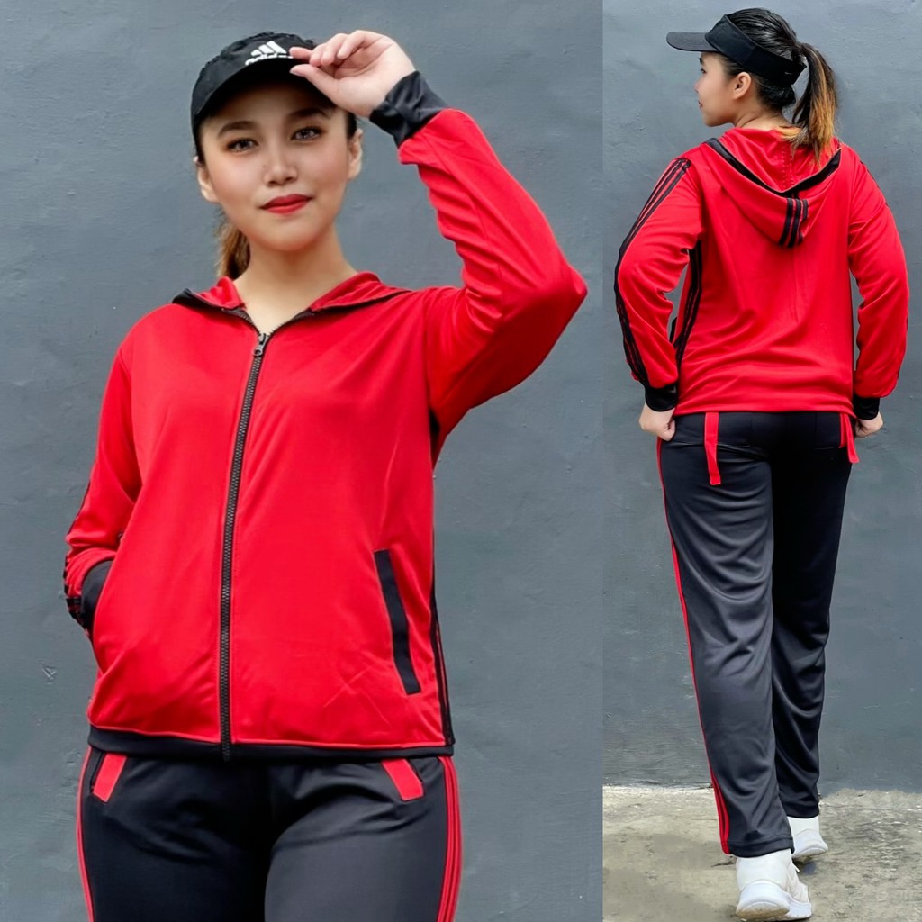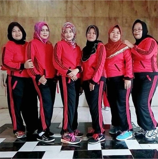 Baju Senam Stelan Olahraga Fitness Hijab Muslim Panjang Training Merah Hitam
