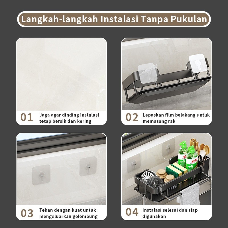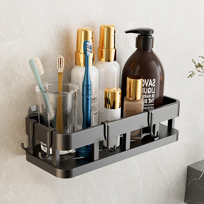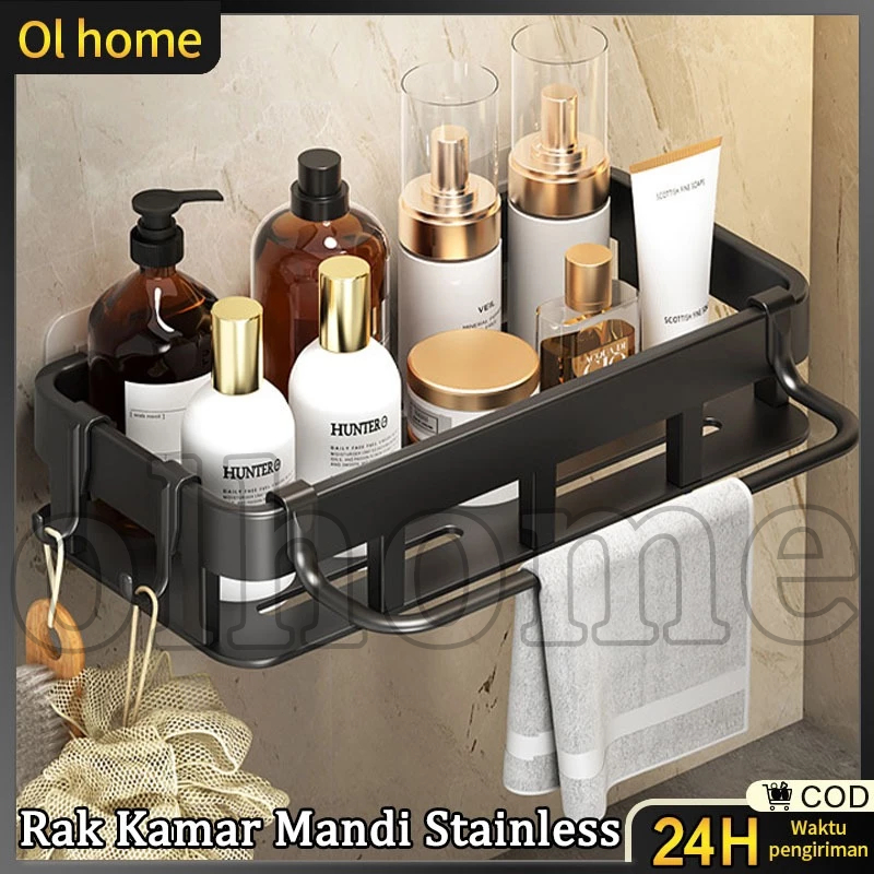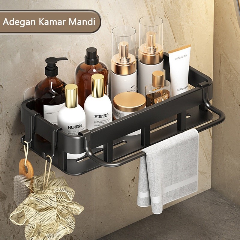 Rak Sabun Kamar Mandi Dinding Stainless Rak Bumbu Dapur Tempel Besi Aluminium Hitam Anti Air dan Karat