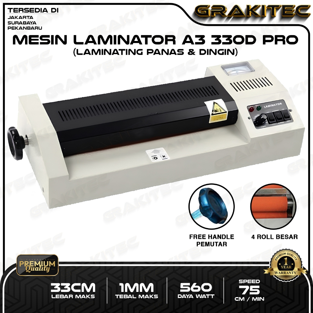 [Star] Mesin Laminating A3 330mm Laminator GRAKITEC 330D + Handle