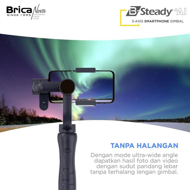 Brica B-Steady AI - BSteady AI 3-Axis Gimbal Stabilizer for Smartphone / HP & Action Cam Garansi Resmi