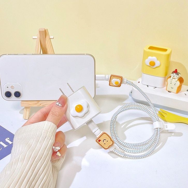 Pelindung Casan 4 PCS Set Casing Egg Telur Kepala Charger iPhone 20W Cover Cable Case Pelindung Kabel Data / Charger US