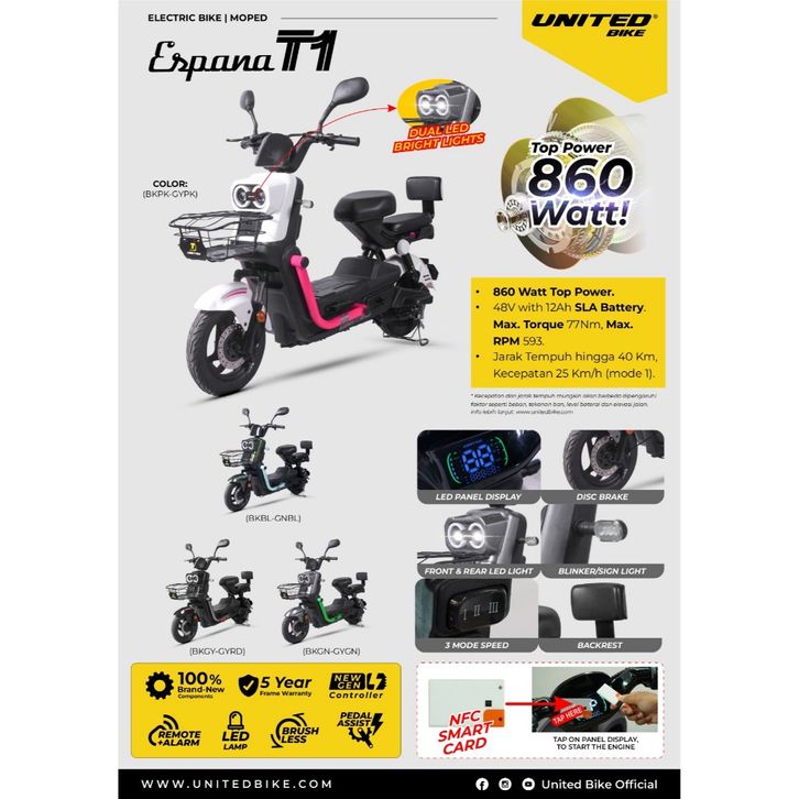Sepeda Listrik Electric Bike ESPANA T1 Dual LED By United