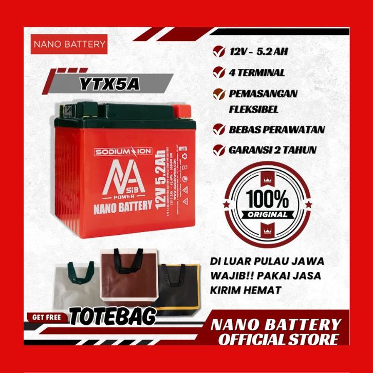 Aki Kering Motor Beat Mobil Gs Yuasa NANO BATTERY Aki Motor Sodium Ion 12.4V 5.2Ah Aki Motor YTX5A 12.4V 5.2Ah Aki Ker