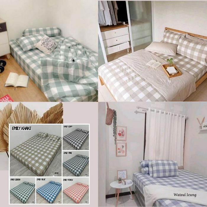 TERLARIS SPREI AESTHIC MODERN MINIMALIS SEPREI HOMEMADE KOREAN STYLE AESTHETIC EMILY GRID KATUN DISPERSE BAHAN AD