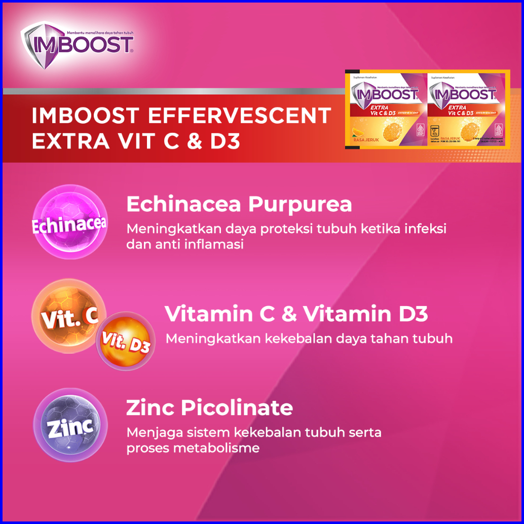 Imboost Extra Effervescent With Vitamin C D3 Rasa Jeruk - 1 Strip 2 Tablet