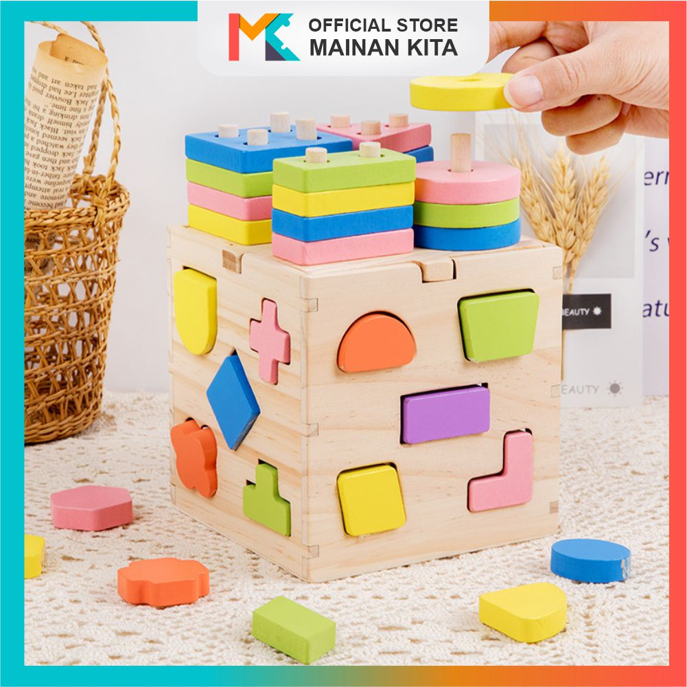 Mainan Edukasi Kayu Motorik Puzzle Geometri Wooden 3D Toy Box