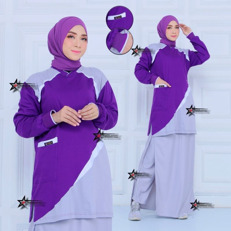 Terbaru " Setelan Baju Olahraga Senam Rok Celana (Rocela) Wanita Tunik Muslimah / Setelan Baju Olahraga Tunik Wanita / Setelan Kaos Olahraga Muslimah