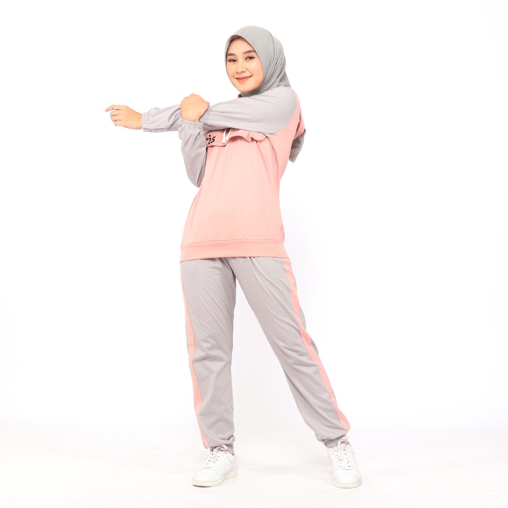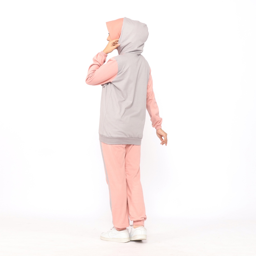 Luna Set - Baju Olahraga Hoodie Wanita One Set Muslim Training Seragam Senam Gowes Jogging