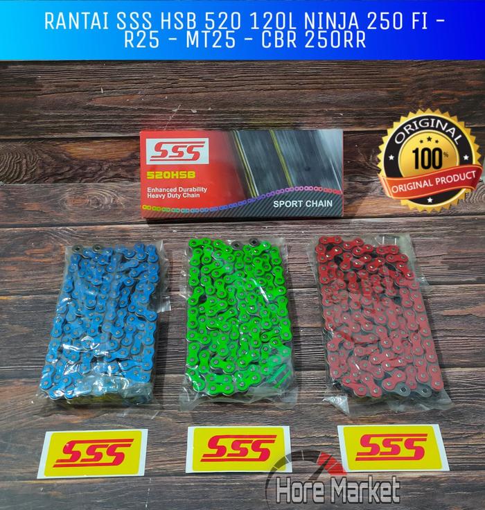 TERLARIS RANTAI SSS HSB 520 120L WARNA NINJA 250 FI OLD NEW R25 CBR 250RR CBR 250 MT 25 ZX25R ZX25R Z250 Z1000 ORIGINA