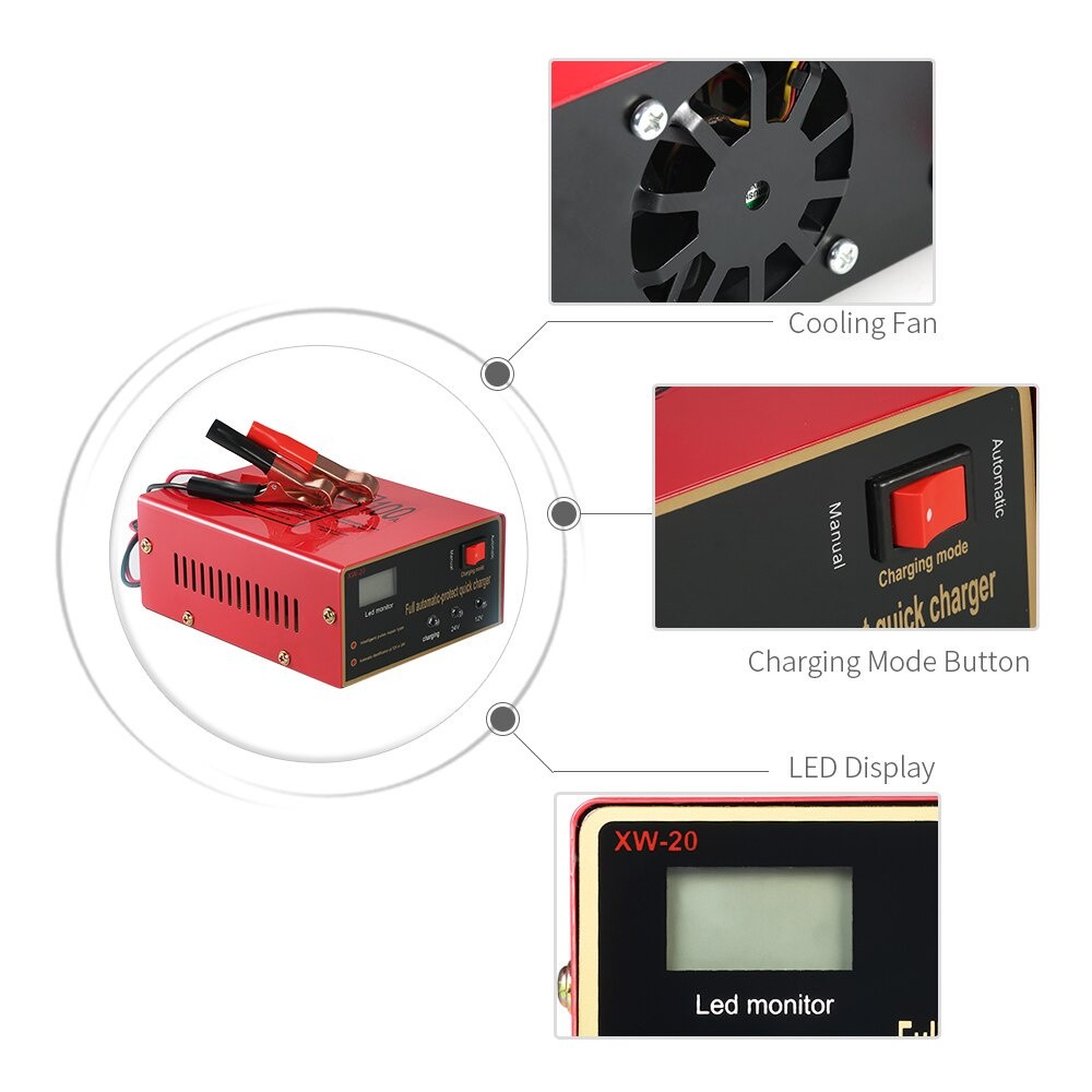 Charger Aki Motor Mobil/Otomatis Accu Kering Dan Basah Lead Acid Battery Charger Auto Charger Aki/Kering Dan Basah Digit