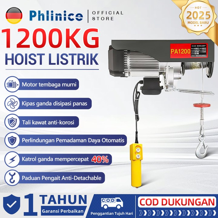 Phlinice Kerekan Listrik Tali Kawat Dapat Mengangkat 1200kg Angkat 20m Kecil Derek Kerekan Dalam Di Luar Ruangan Derek