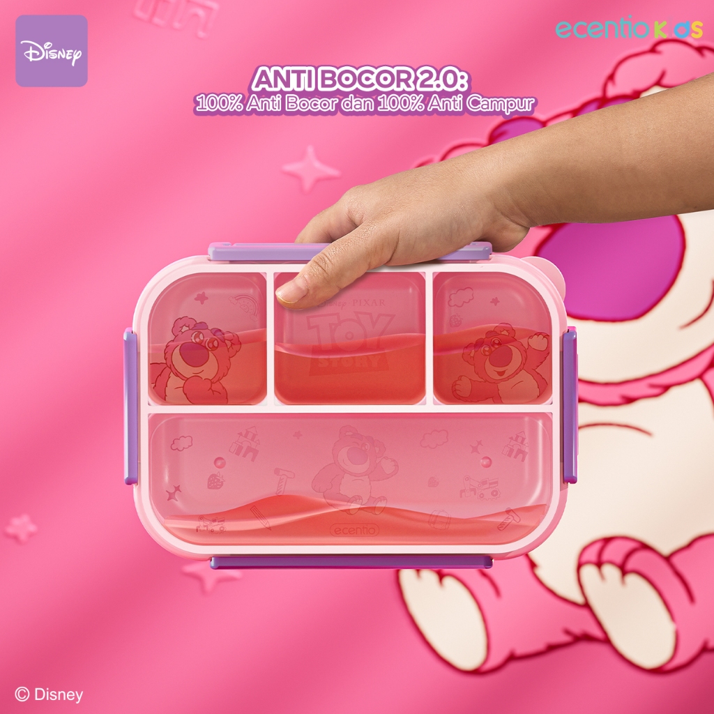 [Lotso & Stitch] ecentio Disney Original kotak makan anak lucu aesthetic 4 sekat kotak bekal anti tumpah 1000ml tempat m