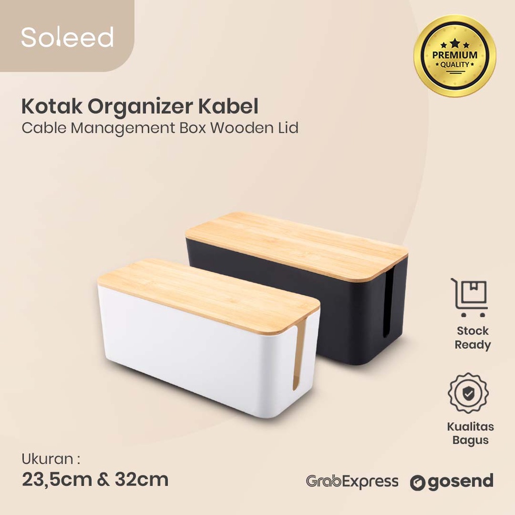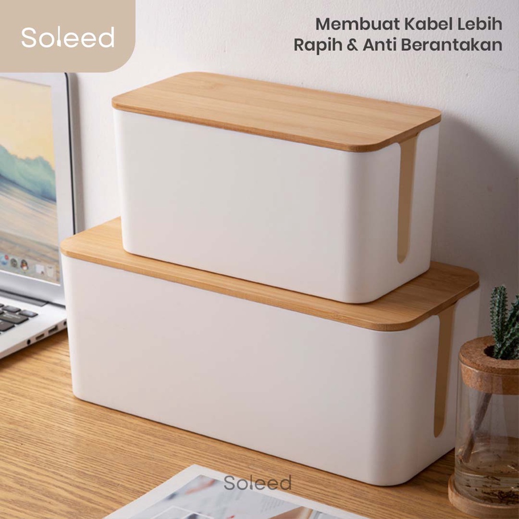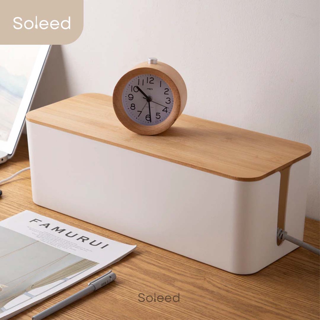 SOLEED Kotak Organizer Kabel Charger Cable Management Box Tutup Bambu
