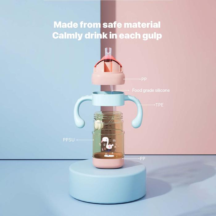 TERLARIS SAKUMINI BABY BOTOL MINUM SEDOTAN TRAINING PPSU STRAW BOTTLE CUP 240ML BAYI CHILDREN YELLOW