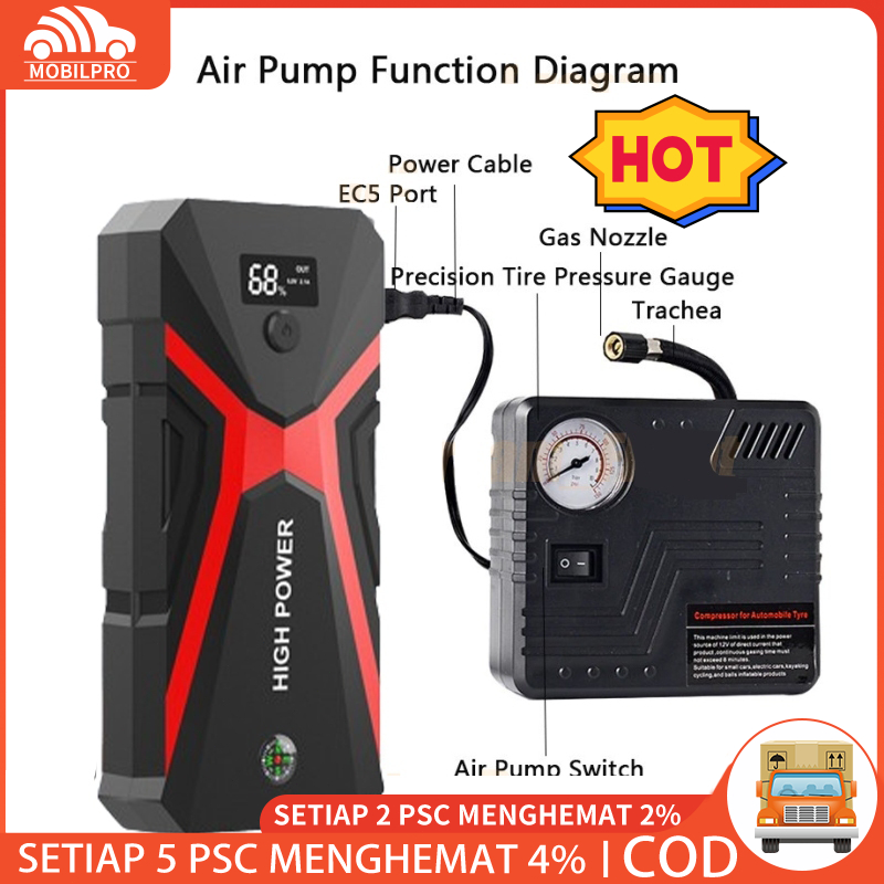 【HOT】12V Aki Mobil Jump Starter 89800MAH Bank Daya Darurat Portabel Multi-Fungsi yang Dapat Diisi Ulang Dengan Pompa Uda
