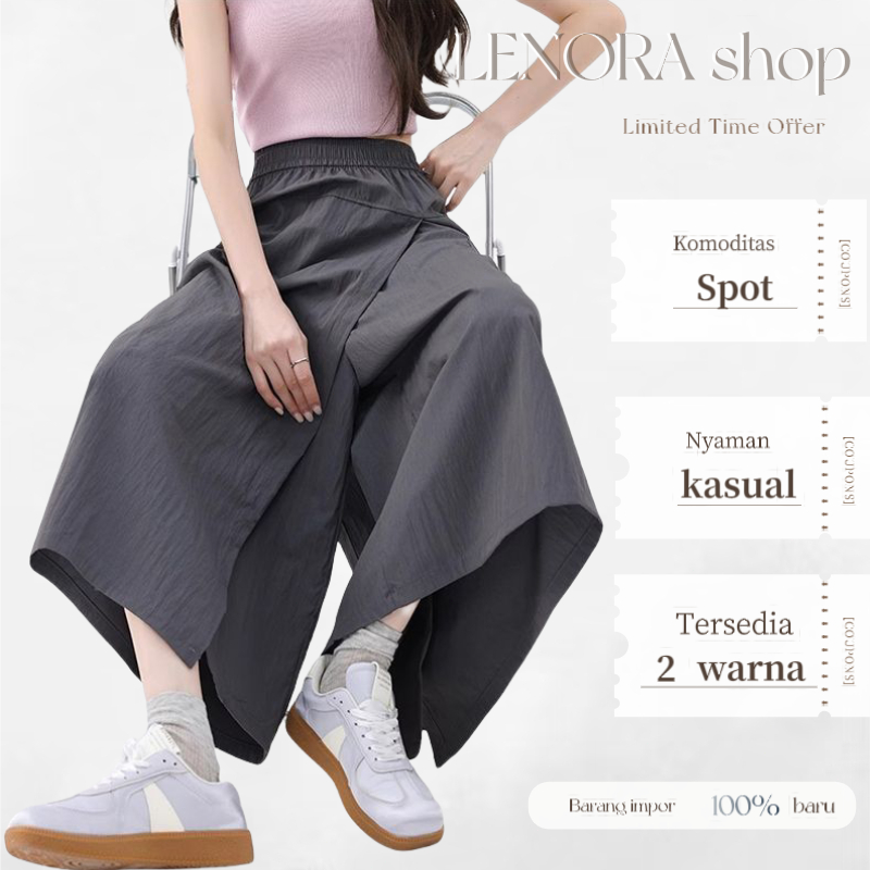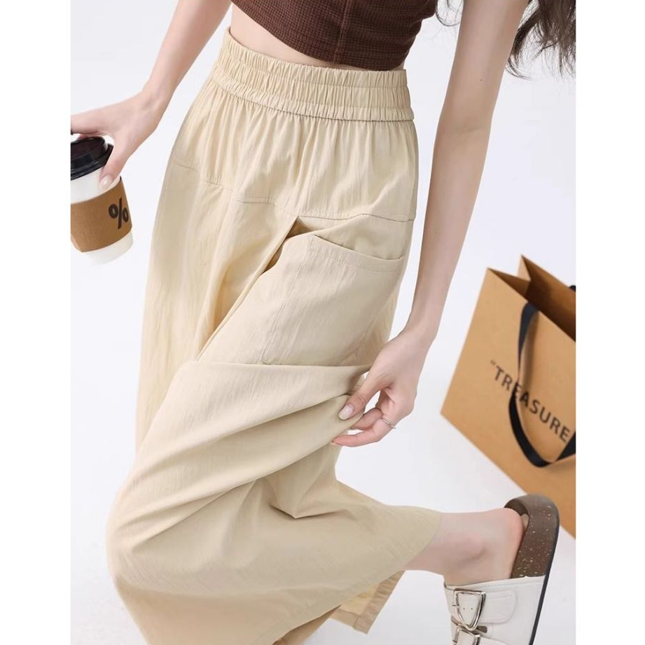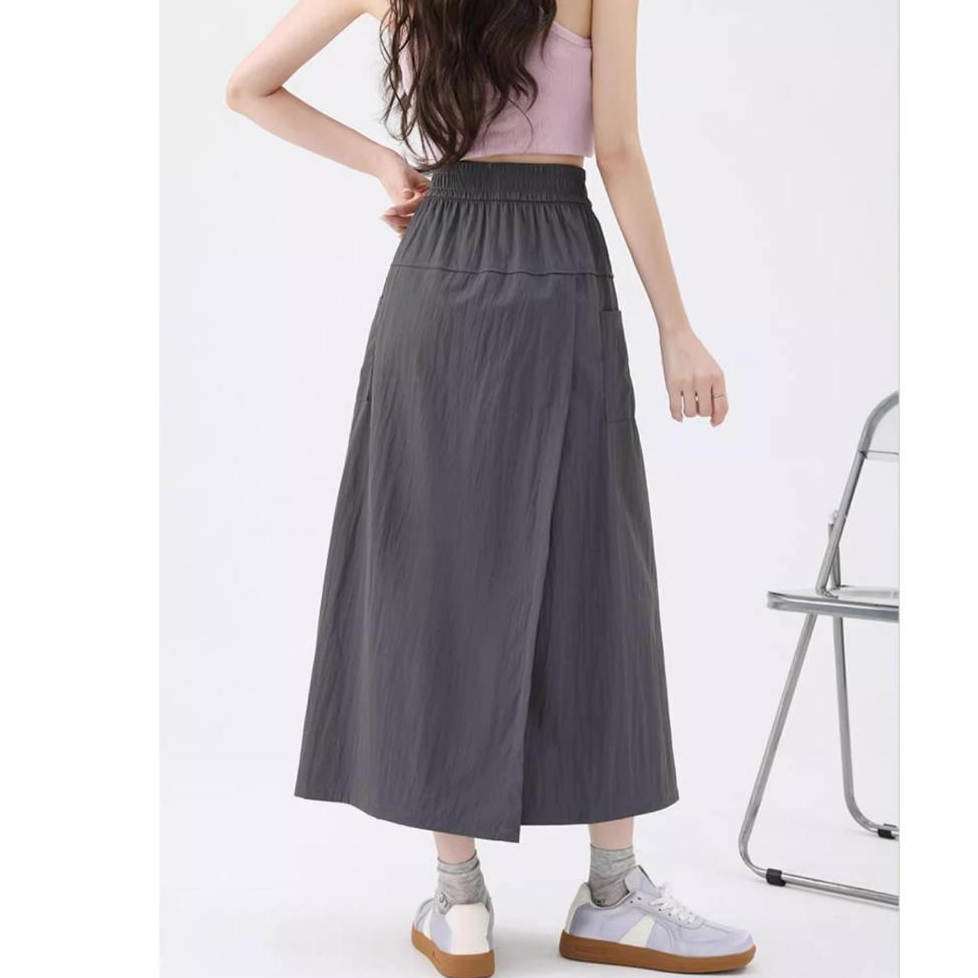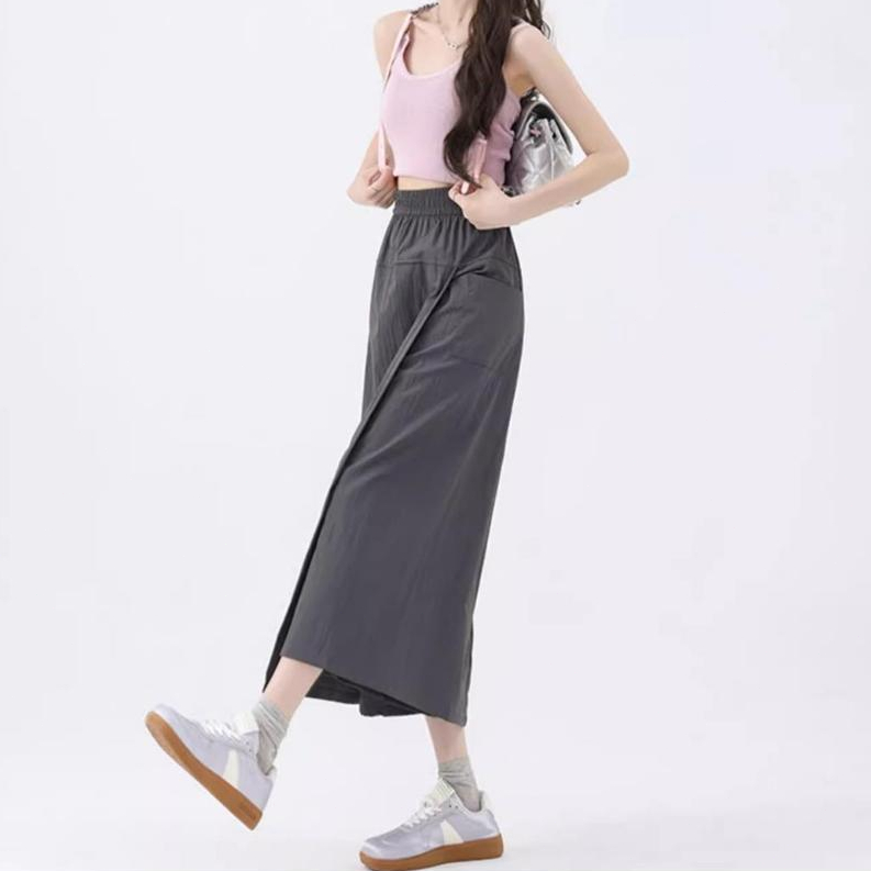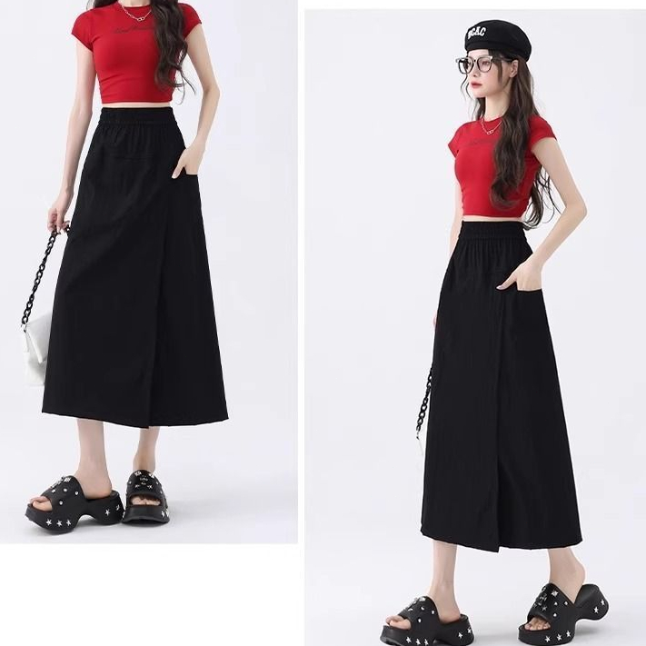[S2XL]Rok Mid-length Wanita Celana Rok Pakaian Kerja Kasual Gaya Korea - Rok Panjang A-line Loose Highwaist Impor