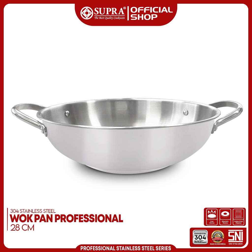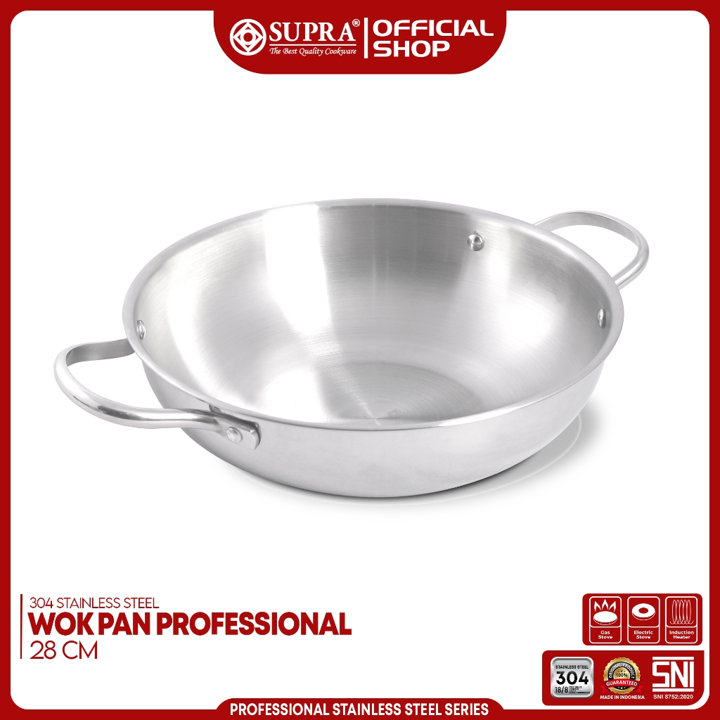 SUPRA Panci Wajan Penggorengan Stainless Steel SUS 304 Wok 28 Cm Professional Series