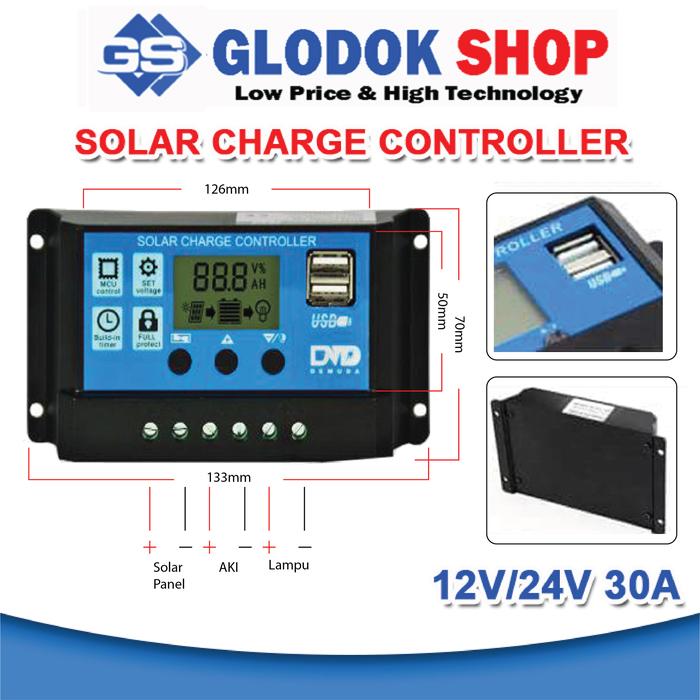 DP 0 SOLAR CHARGE CONTROLLER 30A DC 12V 24V MODEL BARU10A