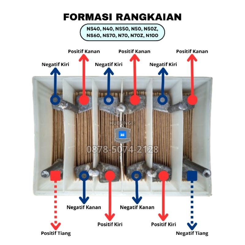 Full Set Rangkaian Sel Aki Positif & Negatif Siap Pasang untuk 1 Aki NS/N40-N200 (Bonus Separator Baru)