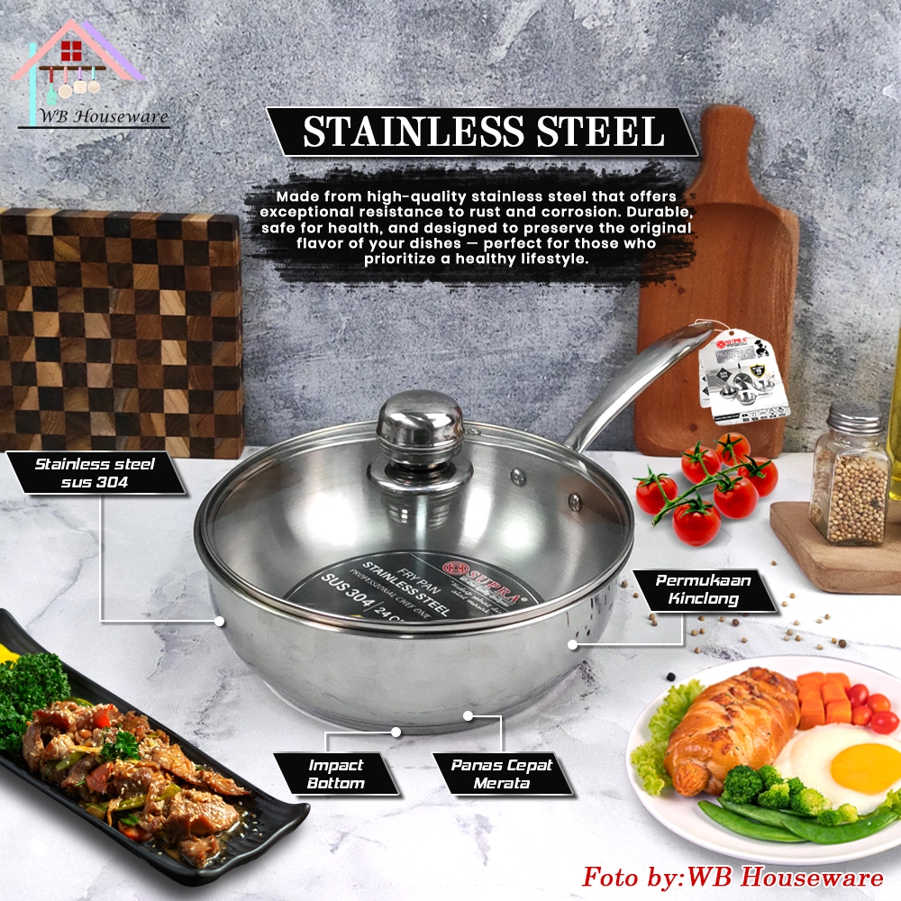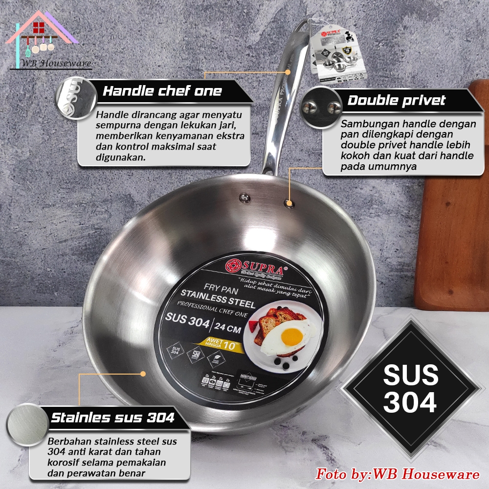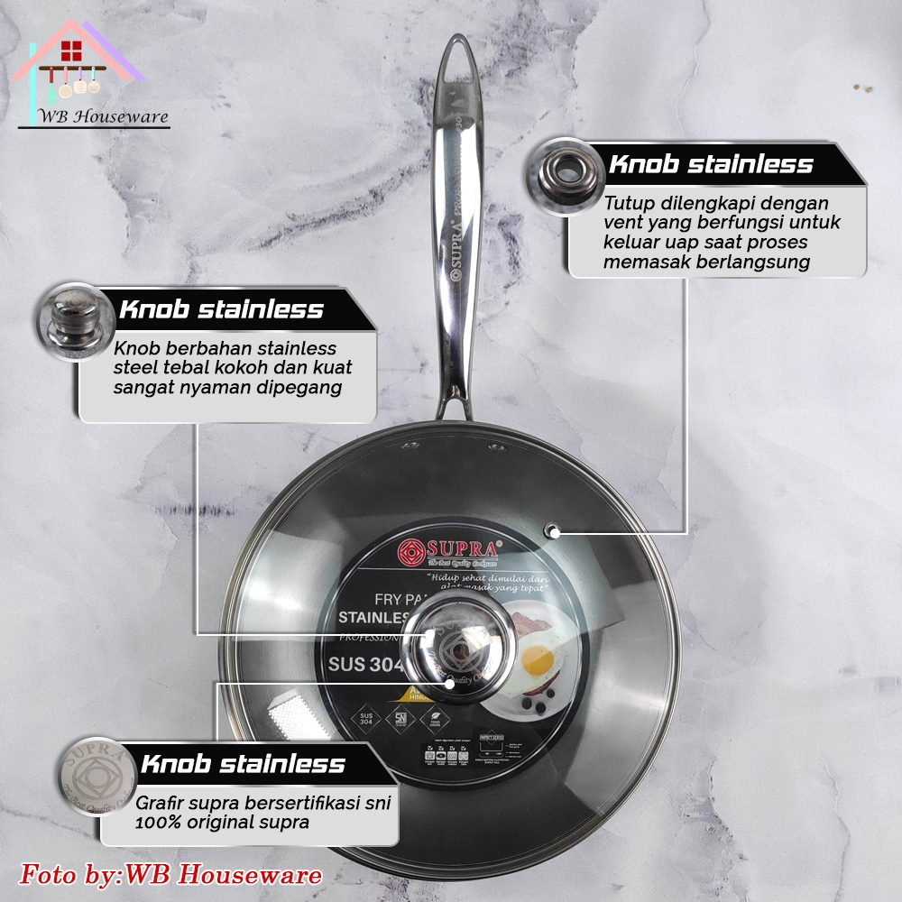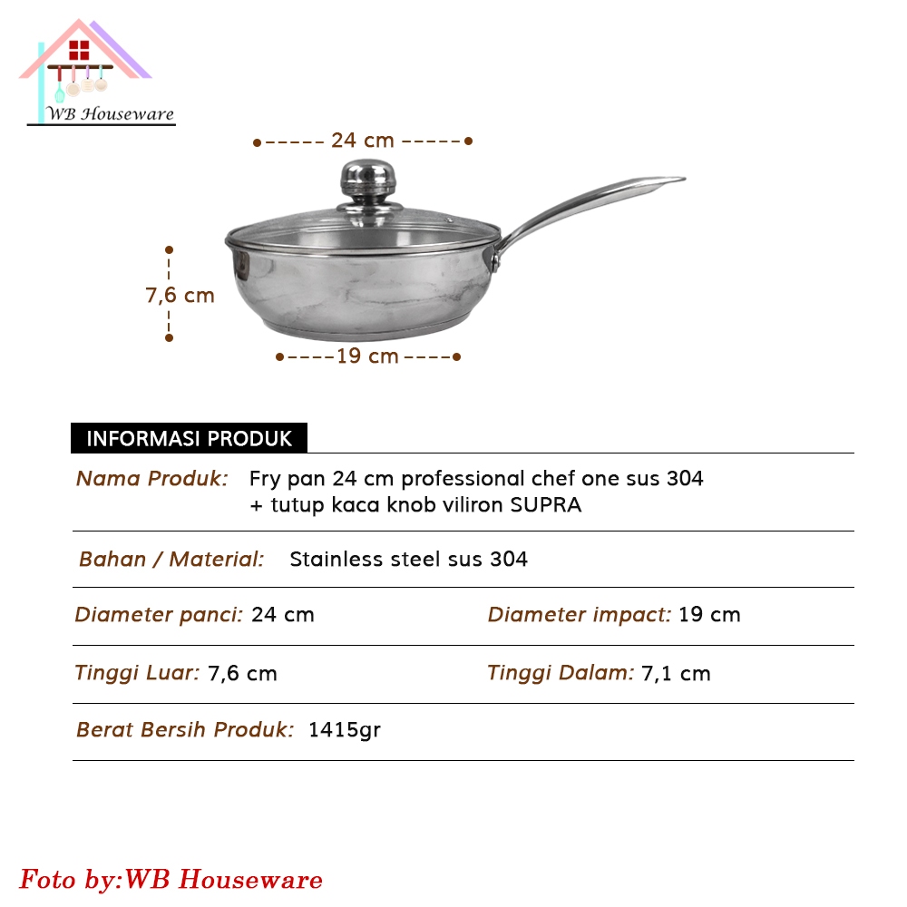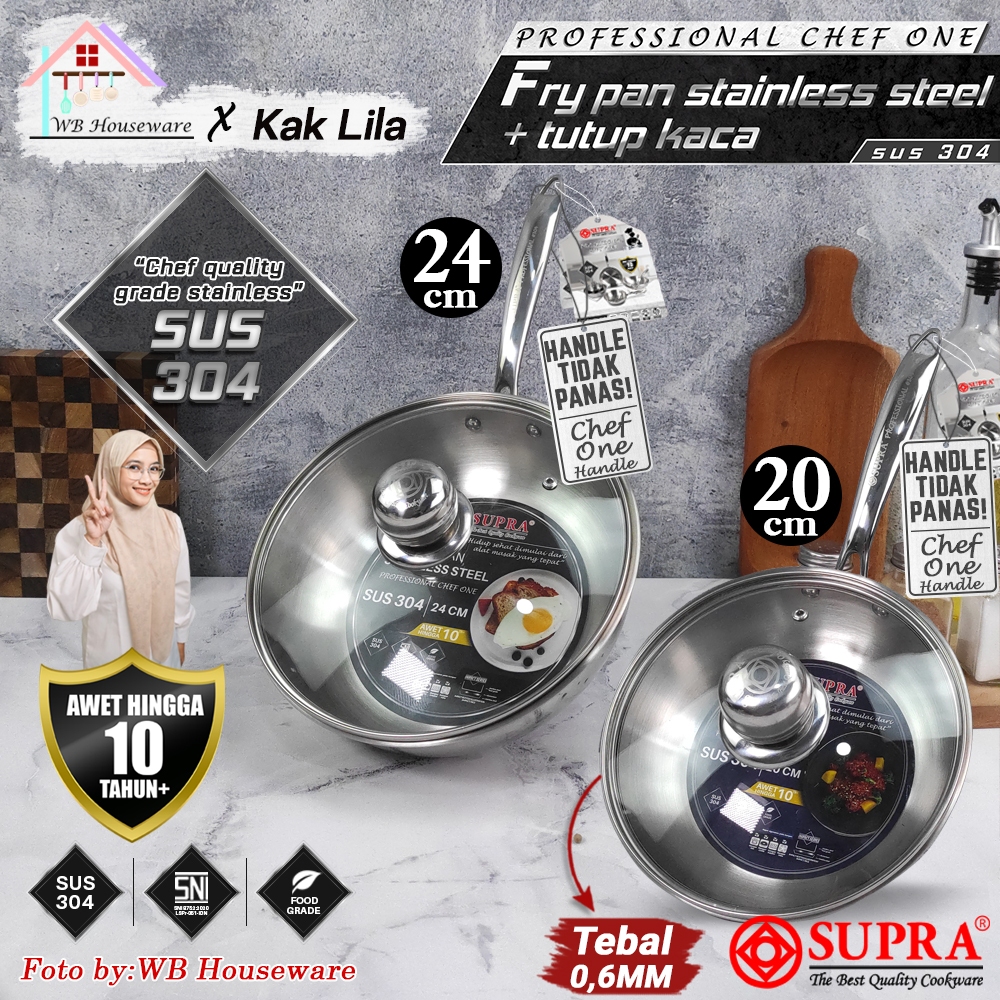 ( Special Live kak lila ) NEW SUPRA Panci Fry pan stainless + tutup kaca viliron series chef one / wajan penggorengan