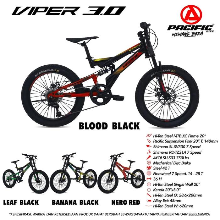 DP 0 SEPEDA GUNUNG 20 INCH MTB PACIFIC VIPER 30 DOUBLE SUSPENSI