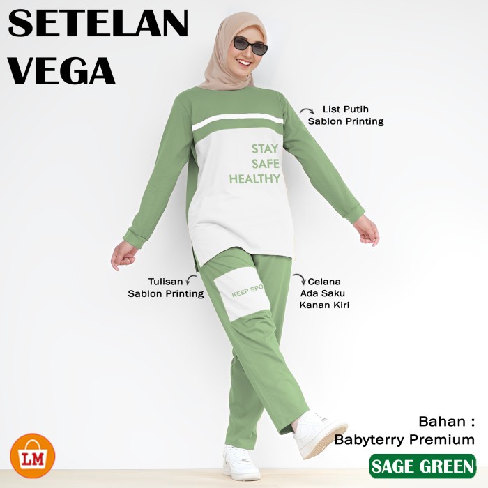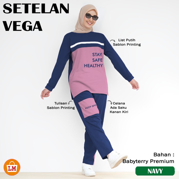 VEGA SET Setelan Kaos Celana Training Olahraga Wanita Muslimah Bahan Babyterry Ukuran XL 2XL 3XL MANTUL 35564