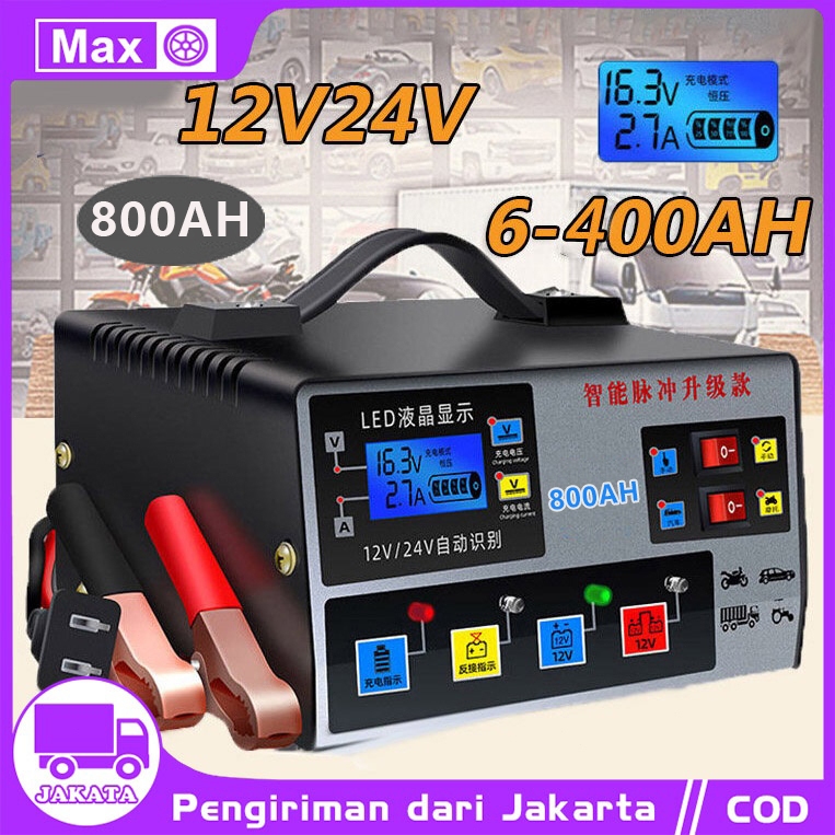 Charger Aki Otomatis 12V-24V Smart Intelligent Auto Repair Mobil Pengisi daya 12v24v 400W 800AH 500AH ,konversi pengenal