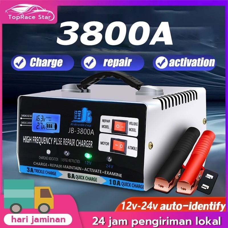 Car Battery Charger Pengisi Daya Aki Mobil 3800A 12 / 24V Tugas Berat Pengisian Cepat Pengisian Cepat Sepenuhnya Otomati