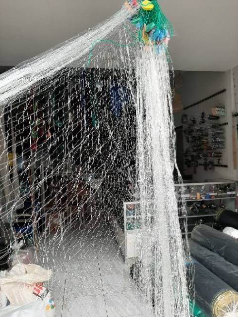 Jaring ikan siap pakai 3 lapis tinggi 1,5m panjang 30m pemberat timah