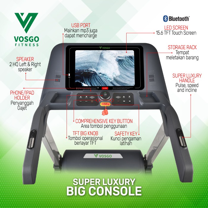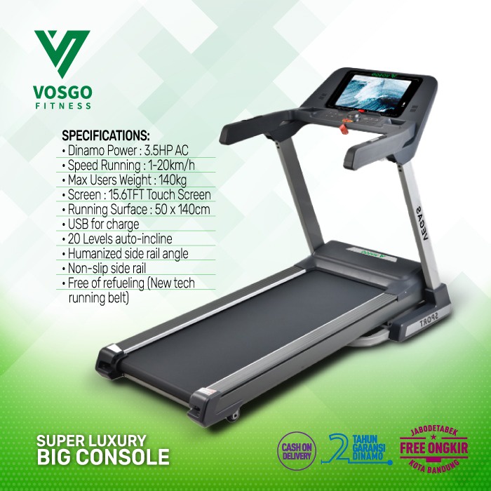 Alat Fitness Treadmill Elektrik Vosgo Vegas Auto Incline