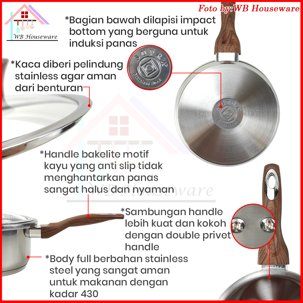 SUPRA Panci Stainless Steel Sauce Pan 18 Cm impact premium collection / panci rebus masak mie gagang panjang
