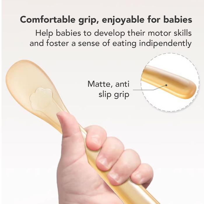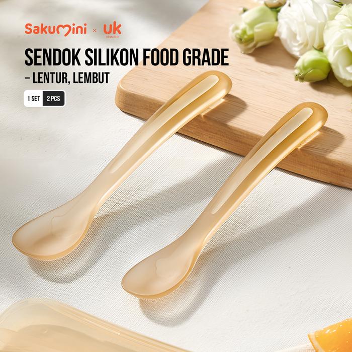 TERLARIS SAKUMINI 2IN1 KIDS SPOON SILICONE SENDOK MAKAN TRAINING ANAK BAYI TEETHER FEEDER KUNING