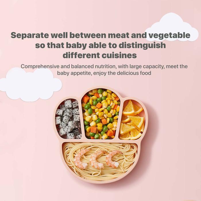 TERLARIS SAKUMINI SILICONE SUCTION PLATE BOWL STRAW PIRING MANGKOK MPASI BAYI PINK