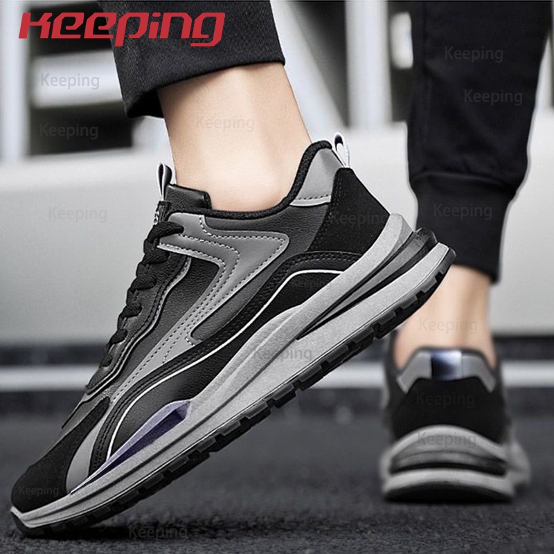 Keeping Sepatu Sneakers Pria Sepatu Olahraga Lari Cowok Hitam Sepatu Sports Jalan Kerja KSR708