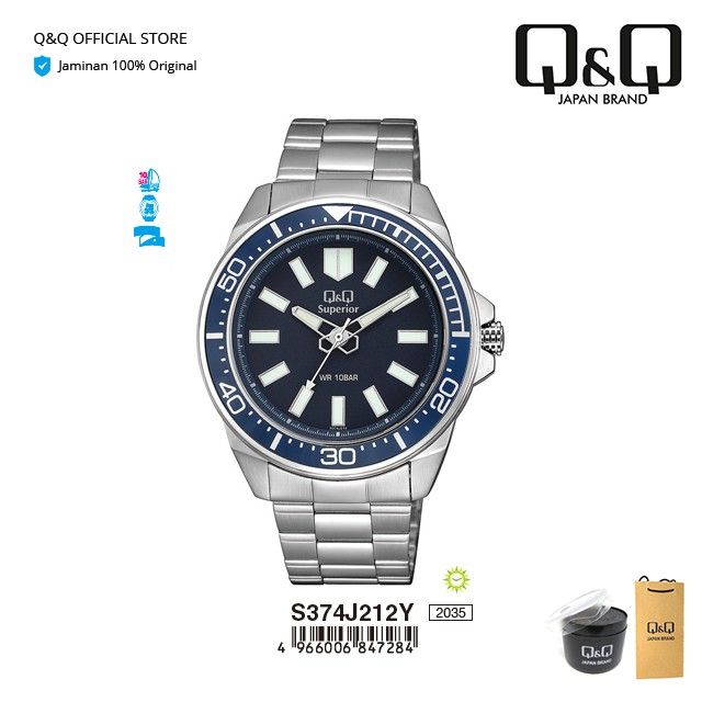 Q&Q QnQ QQ Original Jam Tangan Pria Fashion Analog Stainless Steel - S374 S374J Water Resist