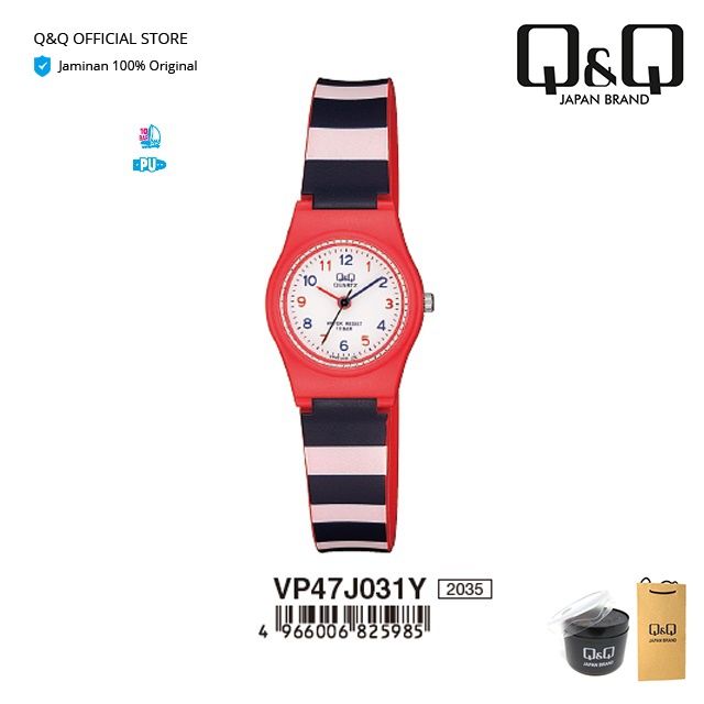 QnQ Q&Q QQ VP47 VP47J Seri Jam Tangan Anak Perempuan Cewek Wanita Jam tangan Karet Original Anti Air 10 BAR