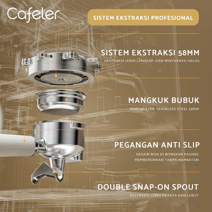 Cafeler Coffee Maker 2 Heater Sistem Mesin Kopi Espresso Grinder 58MM