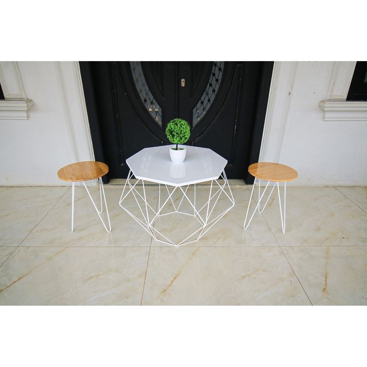 Meja Tamu Minimalis Segi 8 SET 4 Kursi Hitam Natural