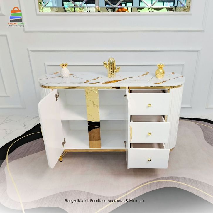 Halzena Meja TV Minimalis Modern Rak TV Lemari TV Bufet TV Minimalis Buffet Oval Credenza Aesthetic