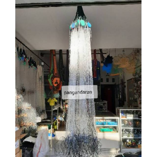 Jaring ikan siap pakai 3 lapis tinggi 1,5m panjang 50m bandul timah