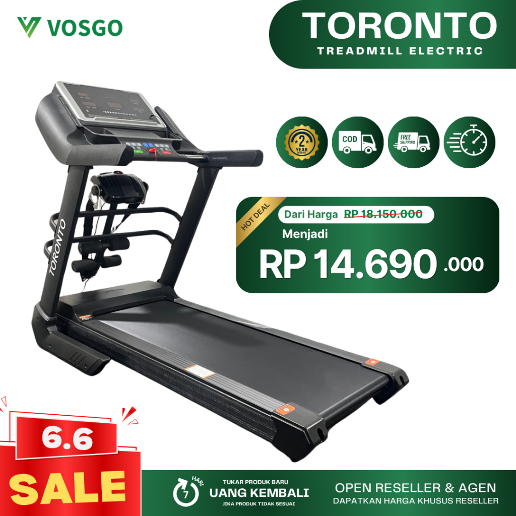 VOSGO Fitness Alat Olahraga Treadmill Elektrik Treadmil Listrik 3.5 HP Garansi Resmi 2 Tahun TORONTO