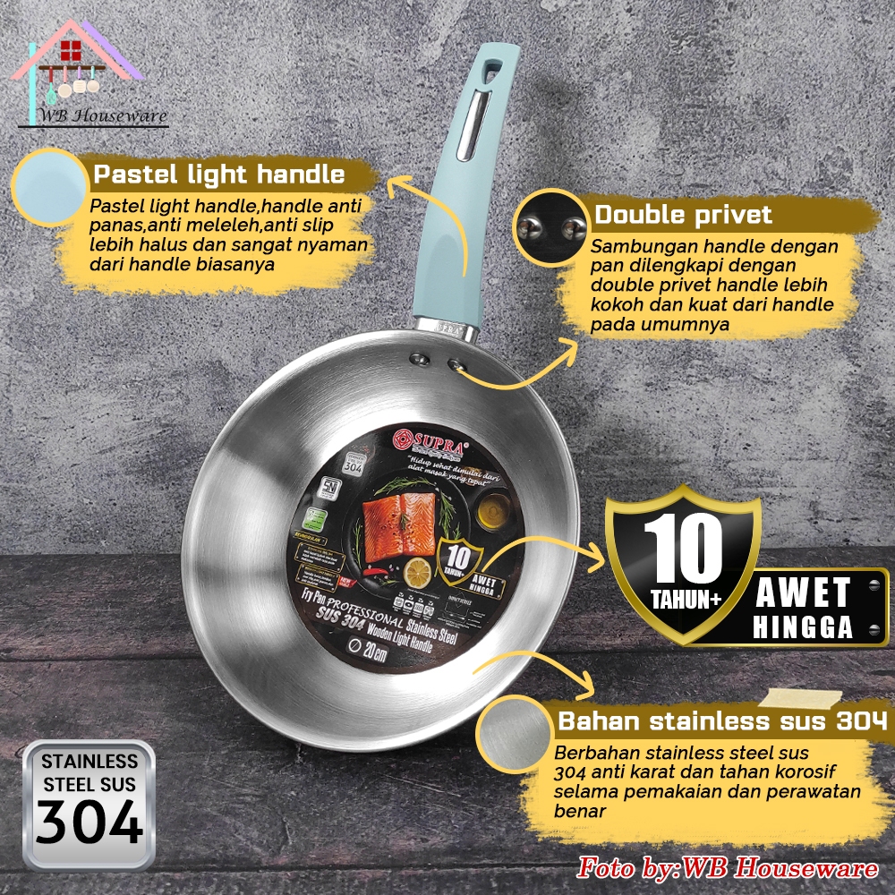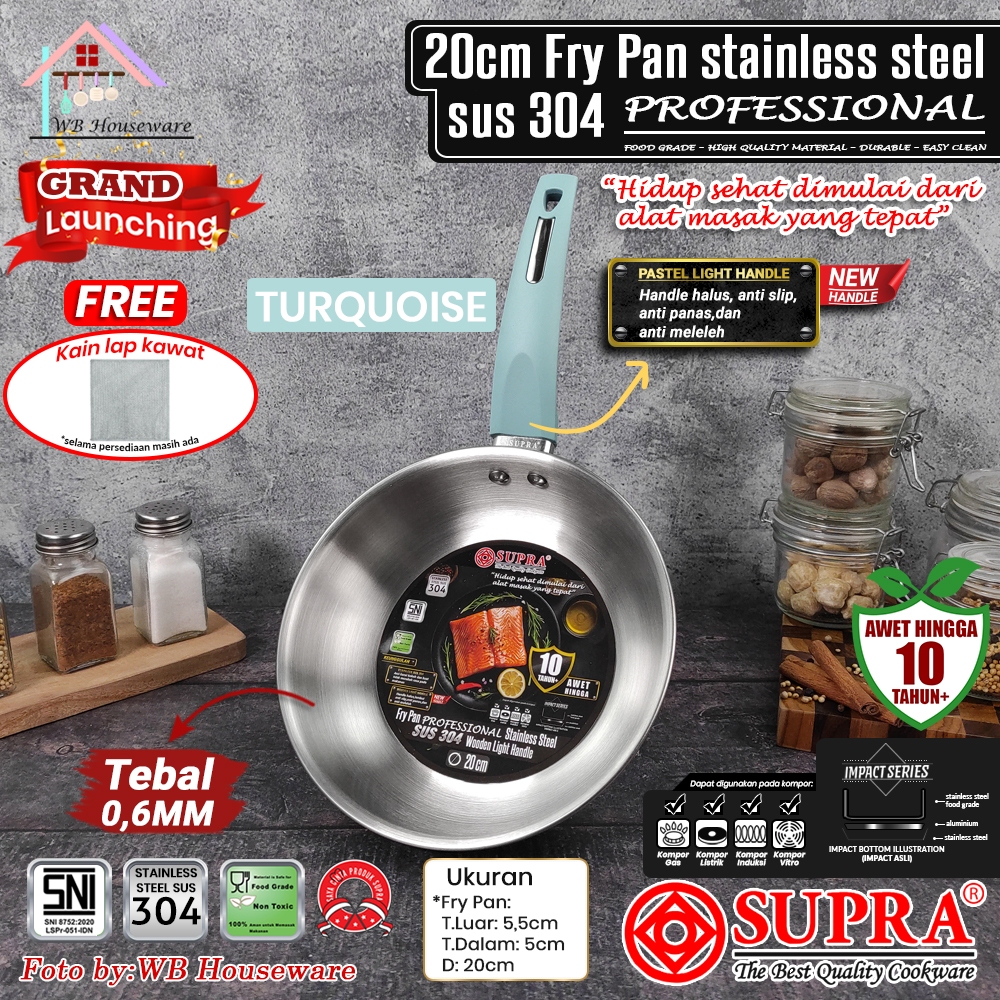 SUPRA Panci Fry pan 20cm stainless SUS 304 professional series handle turquoise impact bottom / wajan masak tumis goreng