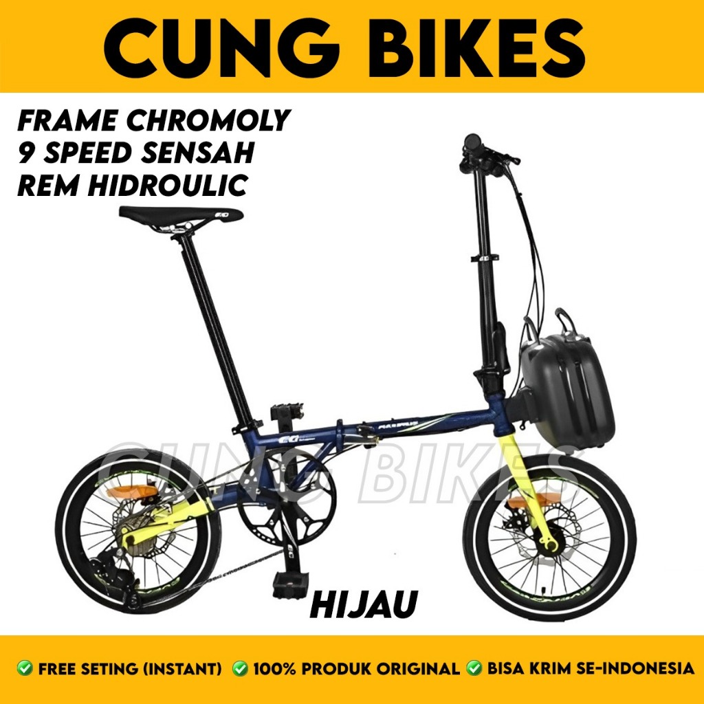 Sepeda Lipat 16 Evergreen Maximus 9 speed Chromoly NEW model troy Generasi 2