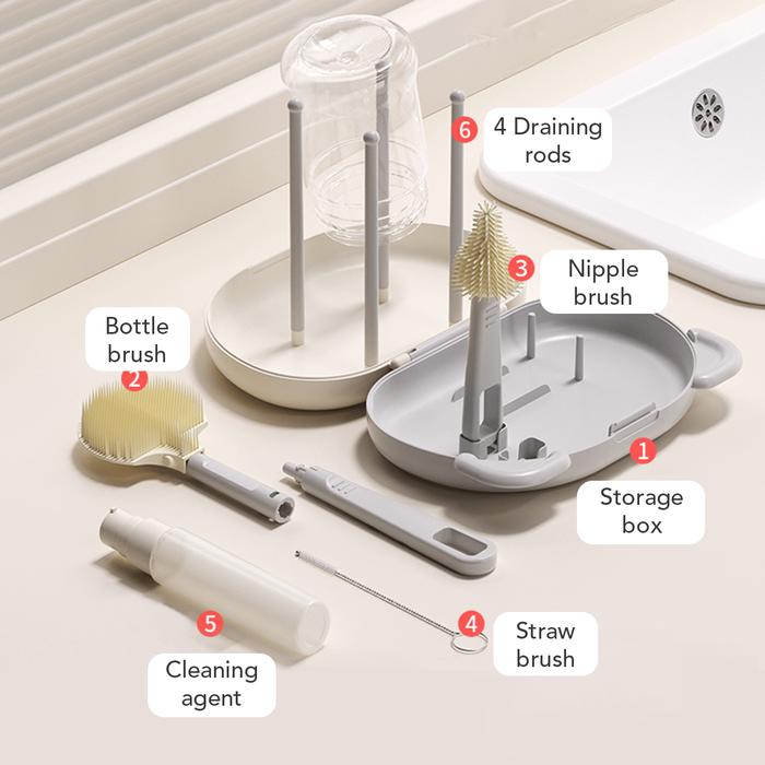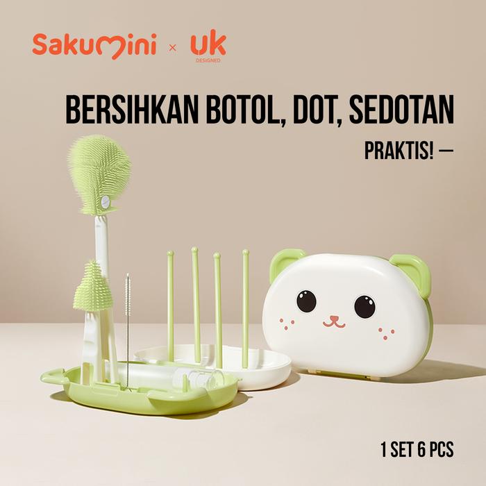 TERLARIS SAKUMINI 6IN1 TRAVELLING BOTTLE BRUSH KIT SIKAT PEMBERSIH BOTOL DOT SEDOTAN MULTIFUNGSI SILIKON HIJAU