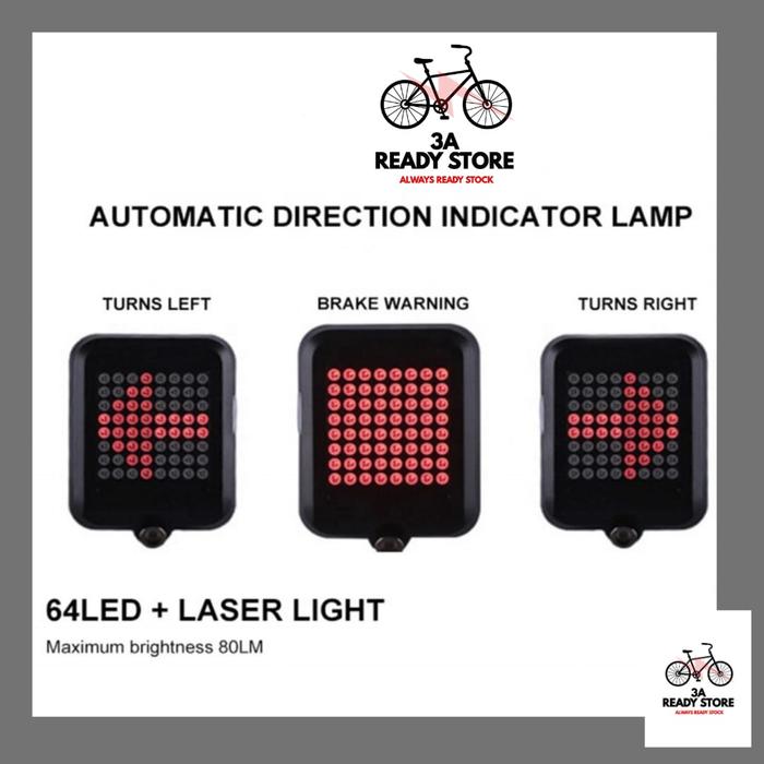 TERLARIS LAMPU SEPEDA BELAKANG 64 LED SENSOR OTOMATIS LASER SMART WATERPROOF