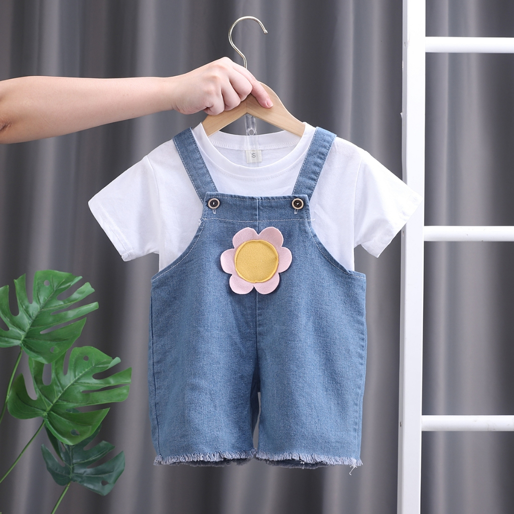 Setelan Baju Kodok Anak Pendek Anak Perempuan Motif Flower Terbaru 1-4 Tahun