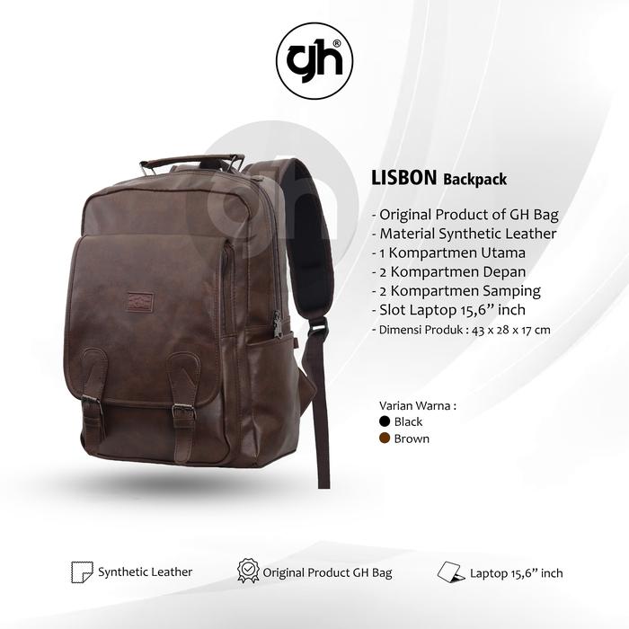TERLARIS GHBAG TAS RANSEL PRIA WANITA KULIT PU LISBON BACKPACK PU LEATHER HITAM